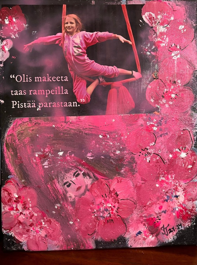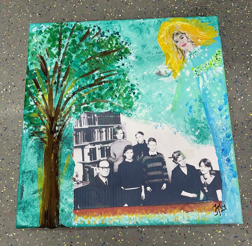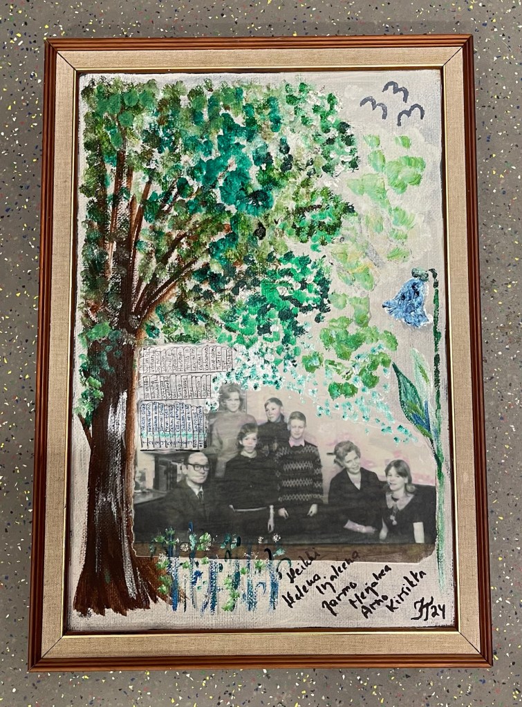 Veljeni täytti 23.5.24 70 vuotta. Juhliin en päässyt, kun oli Ahvenanmaan reissu samaan aikaan. Menen myöhemmin. Innostuin maalaamaan perhekuvan ympärille. Toisen saa veli. Ehkä eukkomaalarille sopii, että mukana on ”eukko”.